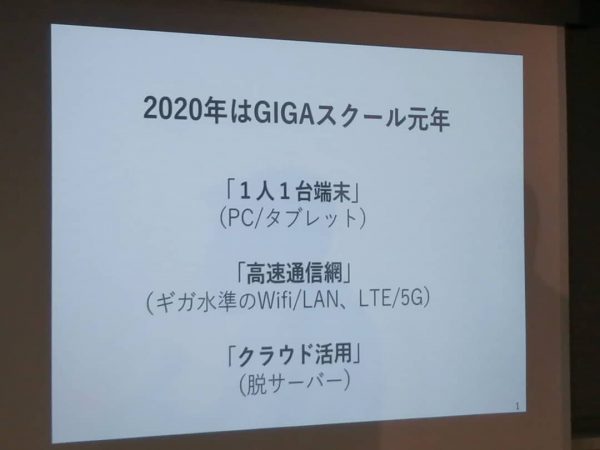 写真は、先日、文科省が進める児童生徒への一人一台のデバイス環境整備を進めるGIGAスクールの勉強会に出た時のものです。